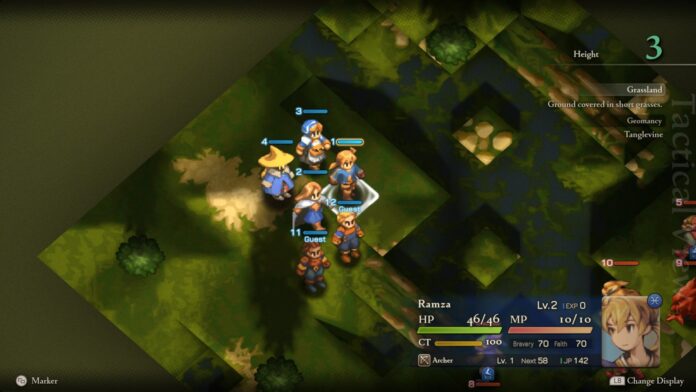 Character progression in Tactics is built around earning both experience points and “job points,” the former increasing your character’s general level in any given job they use and boosting their stats, and the latter being a currency used to unlock abilities within jobs (the term Tactics uses for different traditional Final Fantasy classes, like Knights, Archers, White and Black Mages, and so on). You earn them every time a character performs an action in Tactics‘ turn-based combat—not when they move around the field of battle, but when they perform a major action, like attacking, casting spells, or using items.