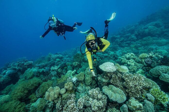 Divers Explore Dead Coral in the Great Barrier Reef © Markus Mauthe / Greenpeace