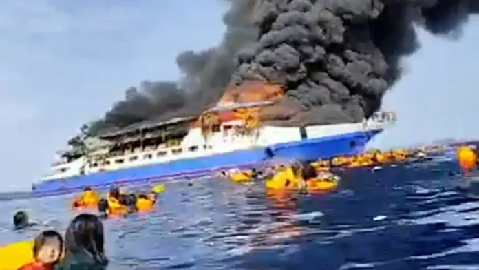 From the terrifying scenes that followed (I’ll post some pictures below), you can see passengers panicking, some already wearing life jackets, others jumping into the sea just to escape the smoke and flames.