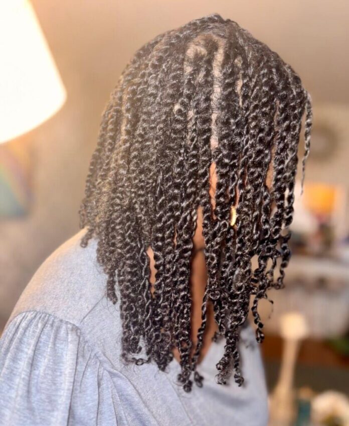 The ends of your twists are likely the most delicate since that’s the oldest section of your hair. When your twists are dry, exposed, or rubbing against your clothes, they dry out further, and your ends begin to look bushy.