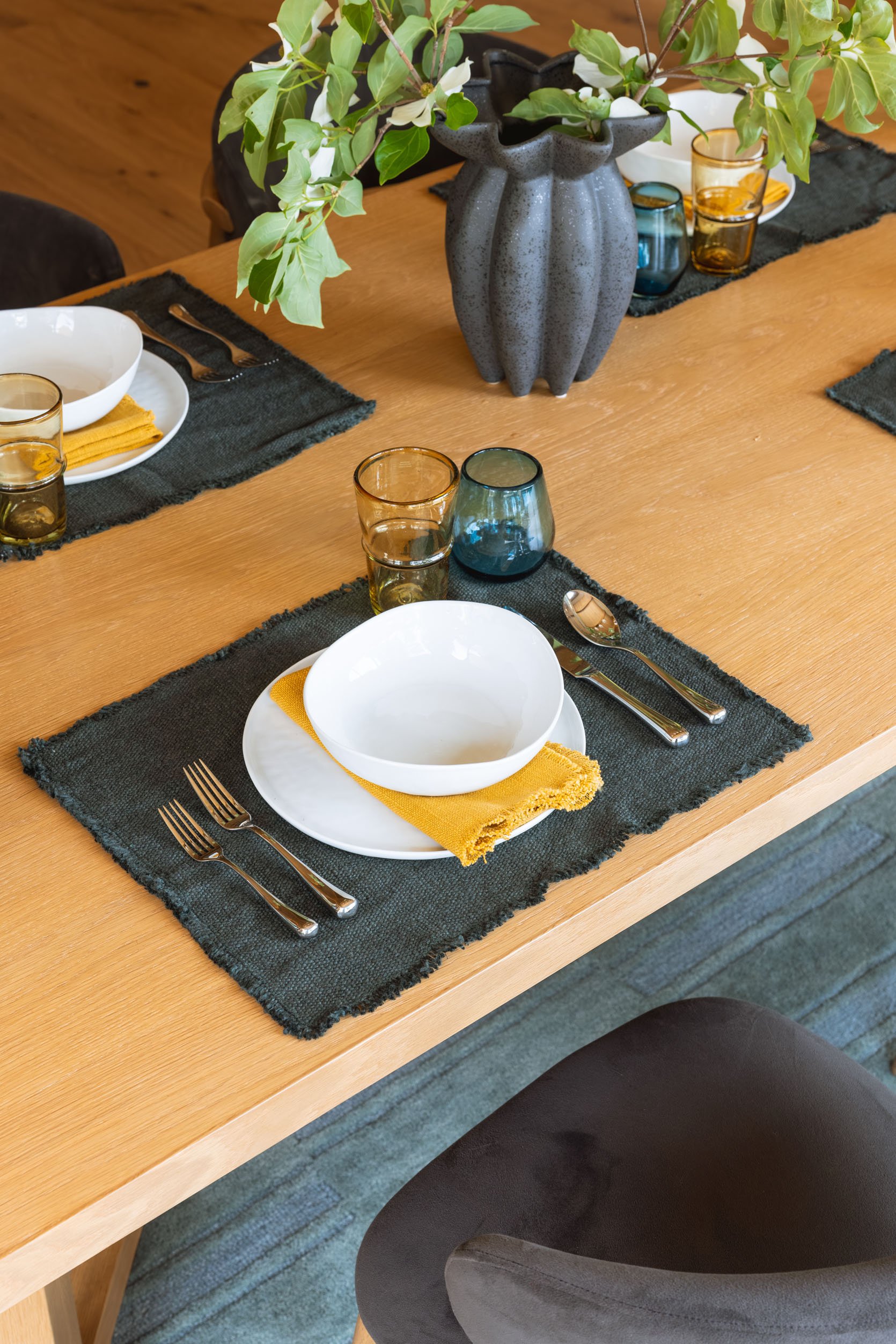 We thought this was a pretty opportunity to set the table and add a lot more color, texture, and warmth. They ended up keeping everything (most were from World Market and Crate and Barrel) so they could recreate when they had nicer dinners.