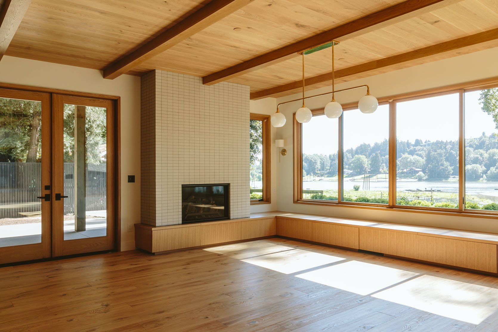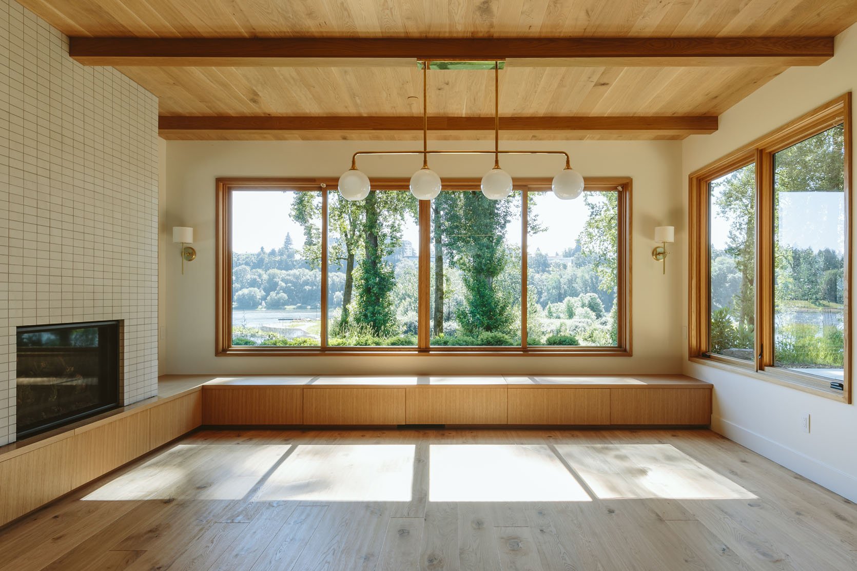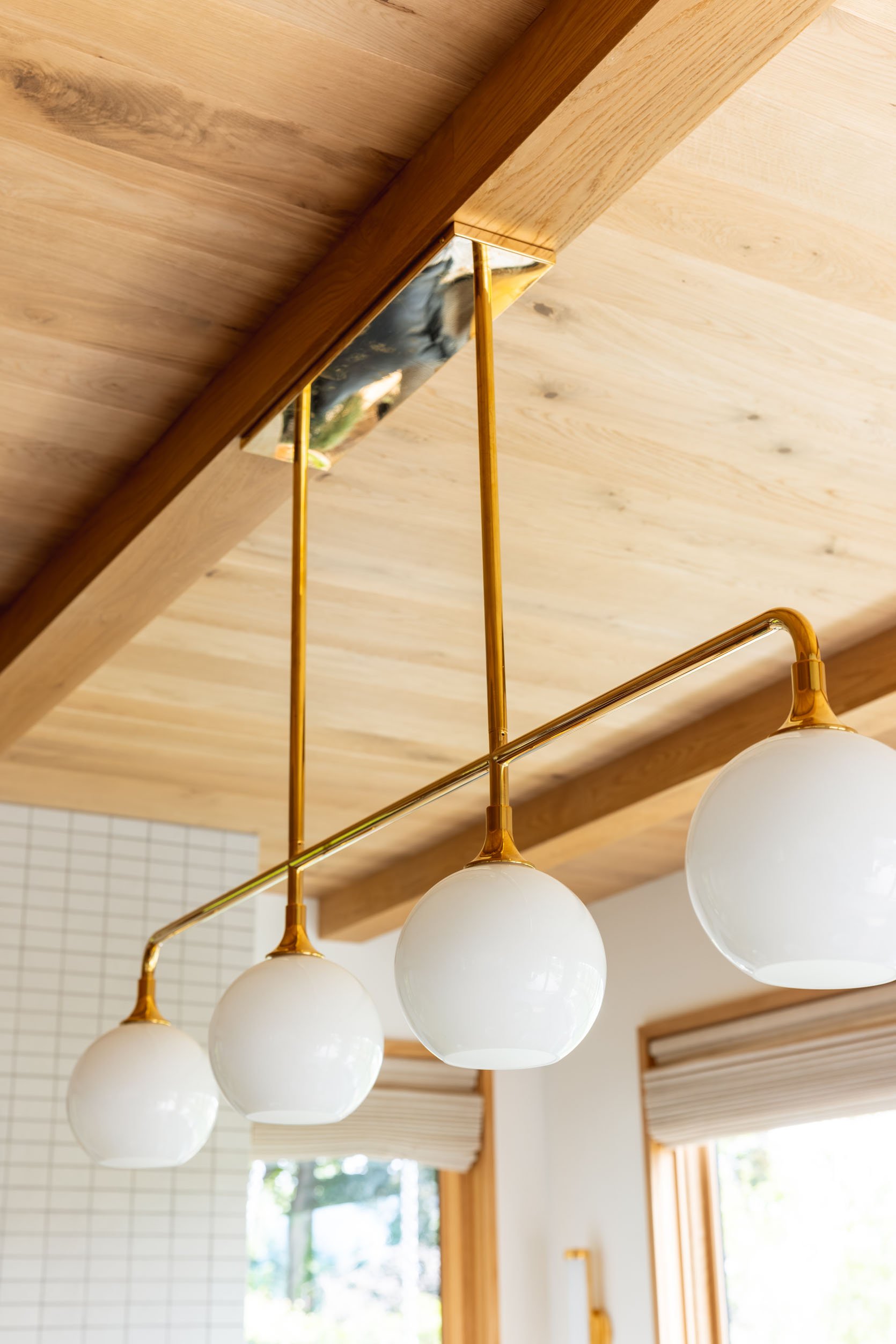 We worked with Rejuvenation on the light fixtures and chose this lovely linear and graphic chandelier that gave them ample light (no recessed lights in here) but wasn’t so busy that it would take away from the views behind it. Fun fact is that at first we had clear glass shades because I thought that would allow us to see the view even more, but it actually looked much busier (I think the bulbs inside and all the reflection were just distracting in this case). Once we swapped out the glass (Rejuvenation’s customer service was very nice), all of us said it was so much better.