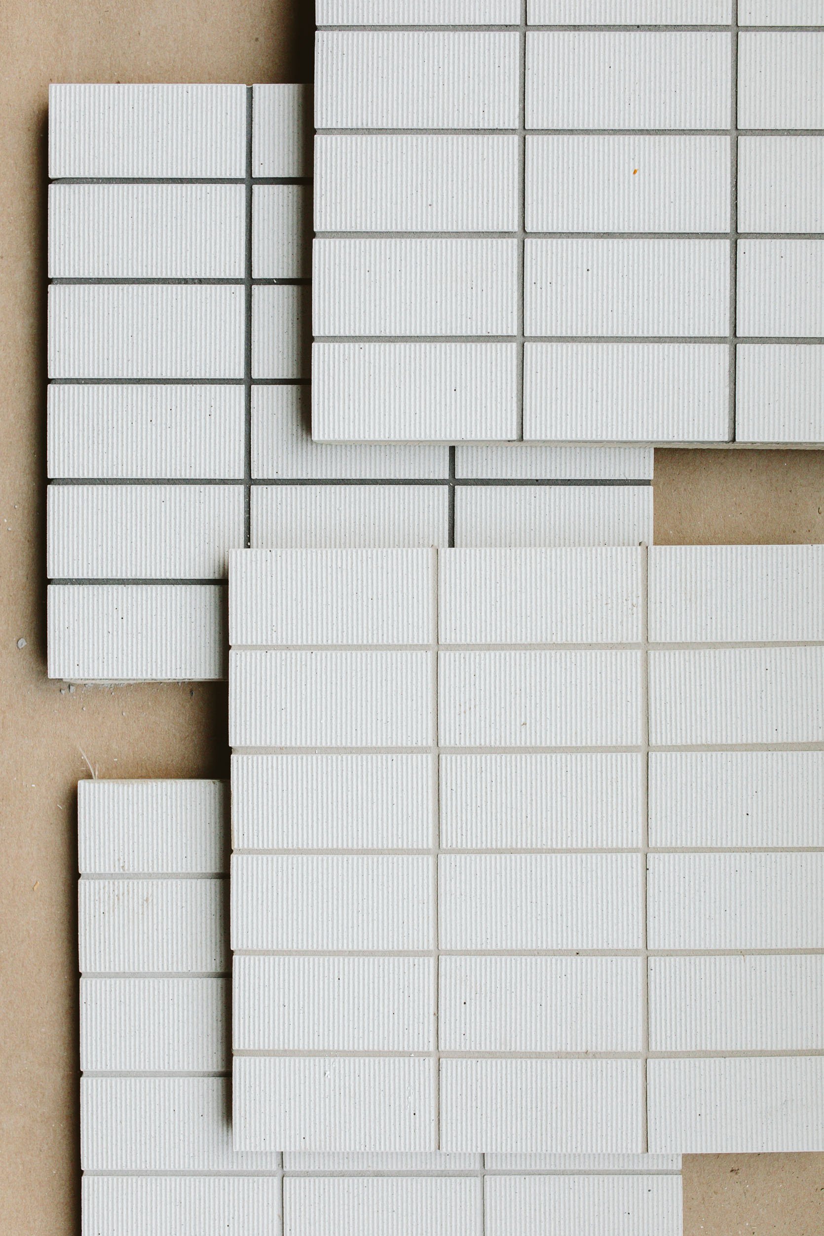 We couldn’t decide on the grout color – for good reason, grout is a stressful decision because it changes the look of the tile and the room, and is really hard to reverse. We ended up choosing the top right – a medium gray with slightly green undertones that created depth and a pattern, but not too dark or stark. Remember that choosing a lighter grout can work, but often you lose the idea of the stacking grid effect – so it can look more like a wall of texture rather than a more graphic geometric pattern. We wanted the pattern 🙂