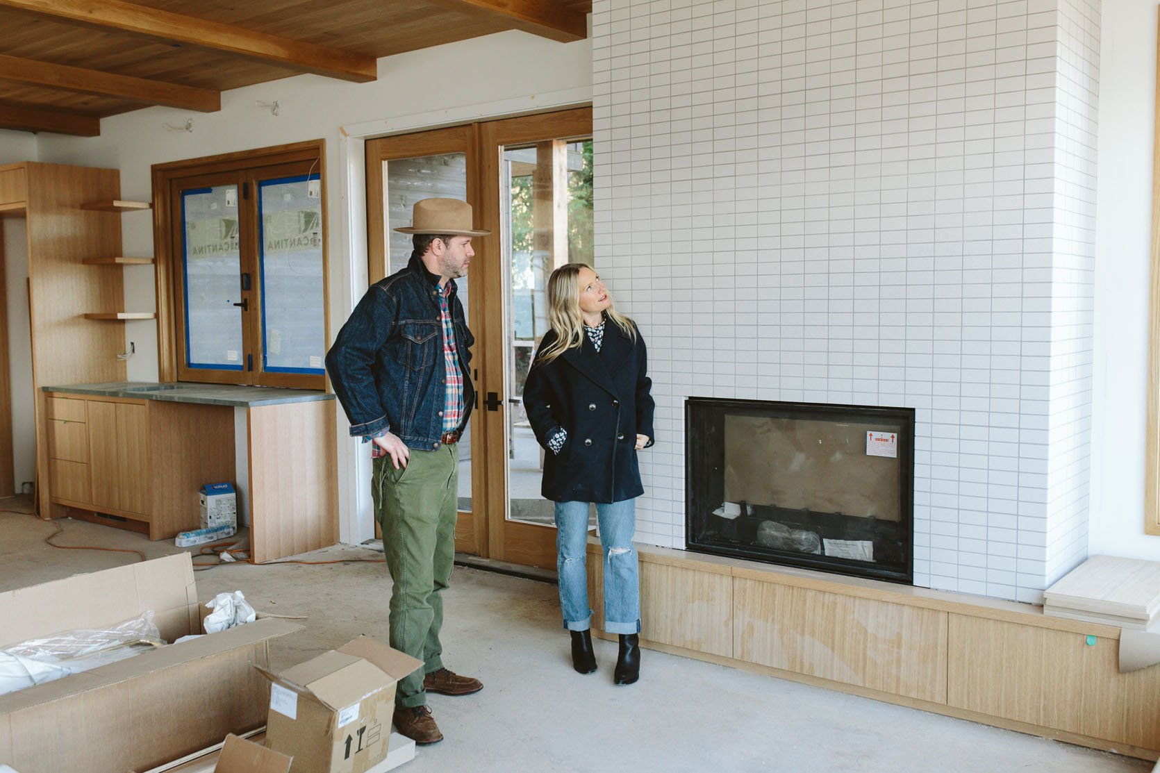 Three years ago, Max and I picked out the tile from Ann Sacks, a really simple but textural, smaller brick tile that we stacked horizontally to create a big, quiet focal point with even a mid-century vibe. My sister in law likes neutrals and didn’t want to go bold at all, and fell in love with this simplicity (and didn’t want to take away from the view).