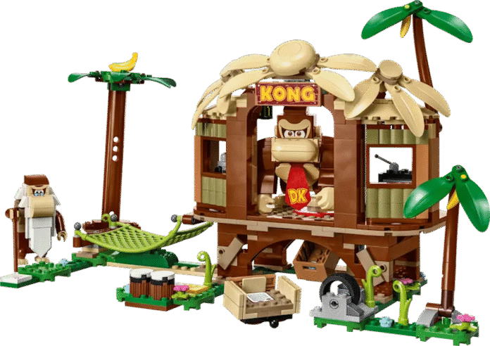 The 387-piece build features a barrel-inspired kart that can fling red and green shells at a target that’s topped with a banana peel. Perhaps most importantly, it comes with a buildable Donkey Kong figure that’s very similar to the one included with the Tree House.
