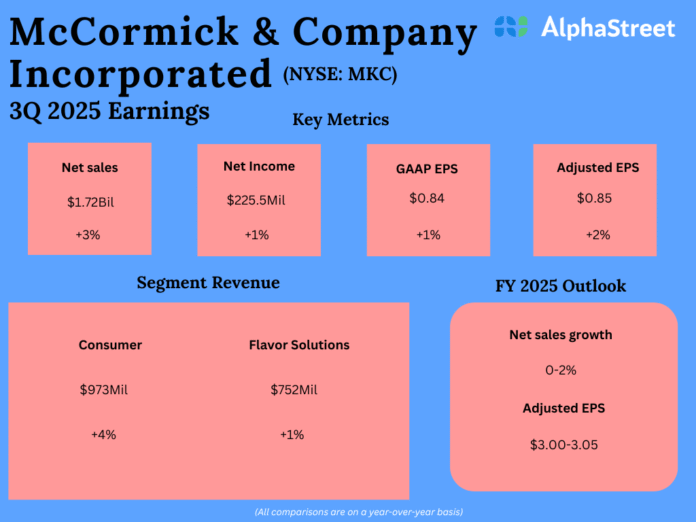 McCormick & Company Incorporated (NYSE: MKC) reported its third quarter 2025 earnings results today.