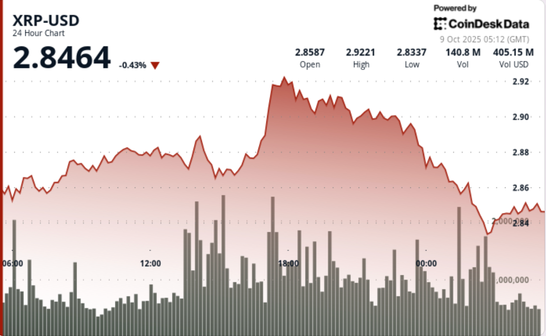 • XRP traded a $0.08 corridor (3% range) between $2.85 and $2.93.