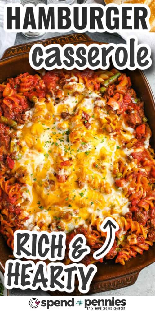 Hamburger casserole is an easy-to-make dish loaded with beef, veggies, and tons of hamburger flavor!