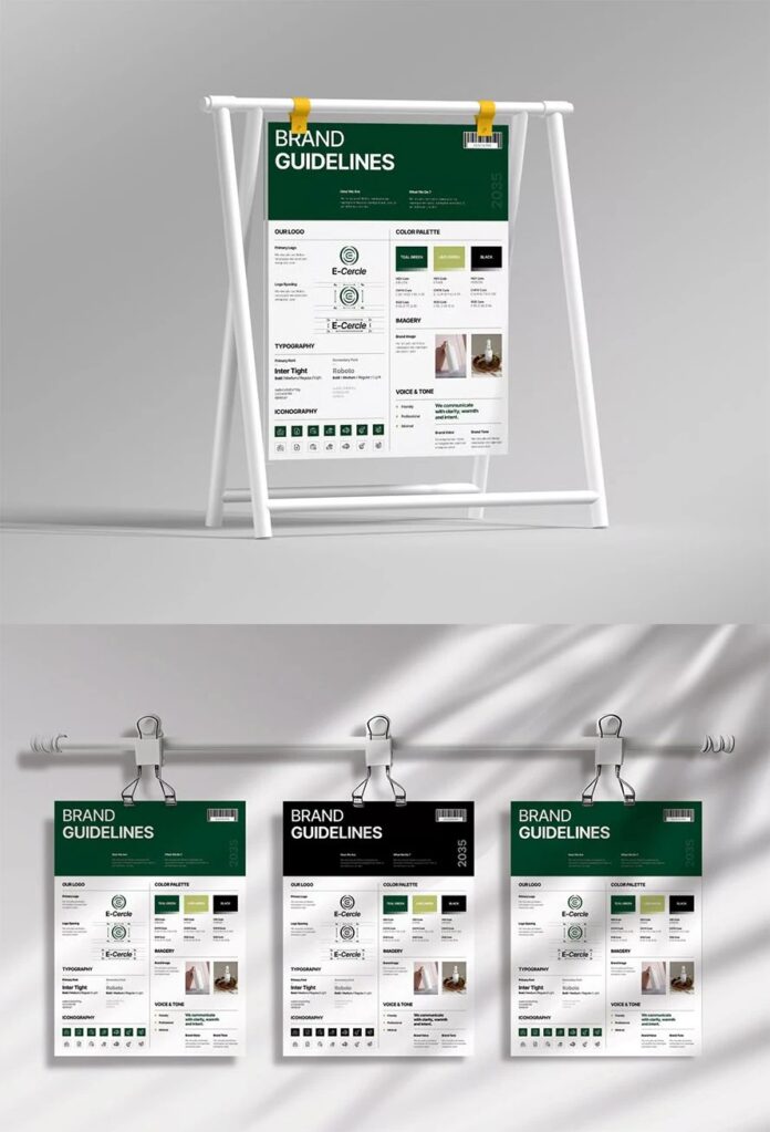 Modern poster-style brand guideline templates help graphic designers maintain design consistency and simplify brand delivery in both digital and print formats.