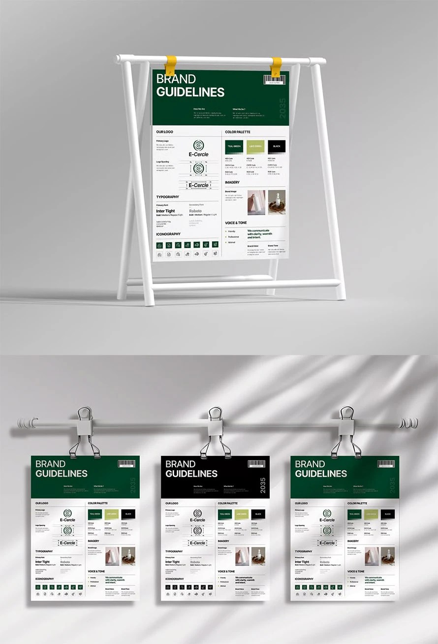 The simplicity of a one-page document allows brands to maintain a professional look without creating long PDF manuals. Designers often prefer this approach for fast brand references or project handovers, especially during early concept stages.