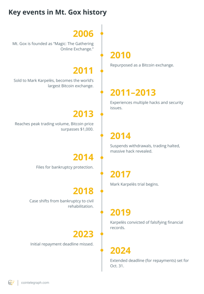 After the exchange’s collapse in 2014, trustees managed its remaining assets, which included hundreds of thousands of BTC. When parts of these holdings were later sold or distributed to creditors, the market saw brief price shocks.