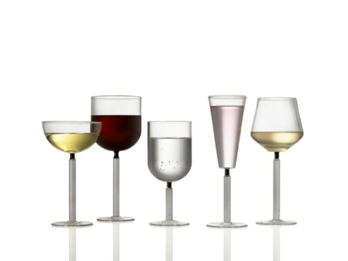 Both collections were developed in collaboration with master Czech artisans in one of the country’s historic glassmaking towns, where Ferrone immersed herself in traditional Bohemian methods while experimenting with entirely new approaches. The Cerna Collection, on the other hand, leans into boldness and tension. Translated to “black” in Czech, the series balances smooth, generous bowls on slender, precisely fluted stems in a way that seems to defy gravity. Each piece varies in the shape of its bowl and the length of its stem, yet together they form a family united by contrast. While never intentionally conceived as an Art Deco revival, the collection nods to the elegance of that era, blending historical references with a distinctly modern sensibility.