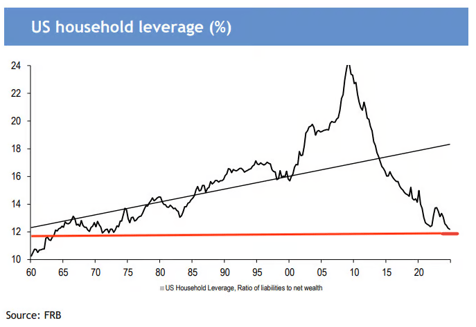 - Consumers are also much stronger. Household leverage is lower than in 1999 and 2007 as well.