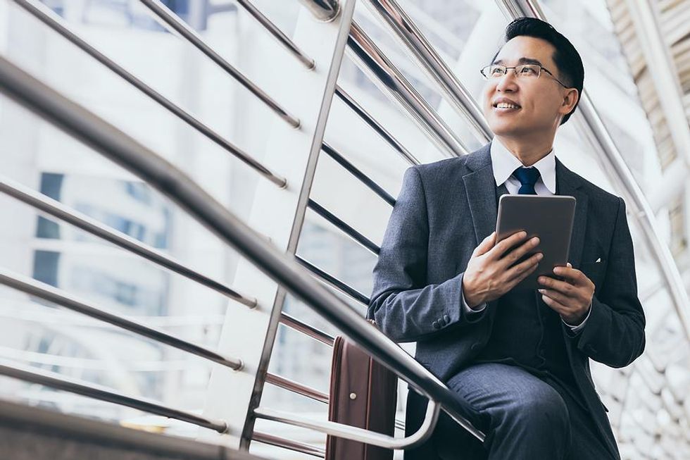 Happy/successful professional man holding a tablet