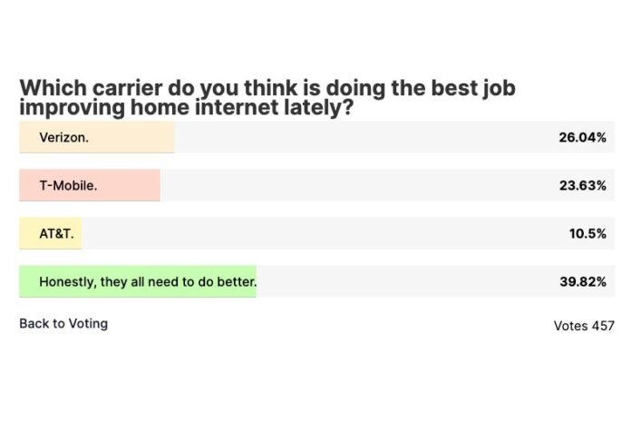Here’s where it gets complicated. While Verizon is making moves, the general feeling out there is… well, a bit lukewarm. We recently ran a poll asking which carrier is doing the best job improving home internet, and the results were telling. While Verizon led the carrier-specific vote with 26%, a whopping 40% of the 450+ respondents said that all carriers need to do better.