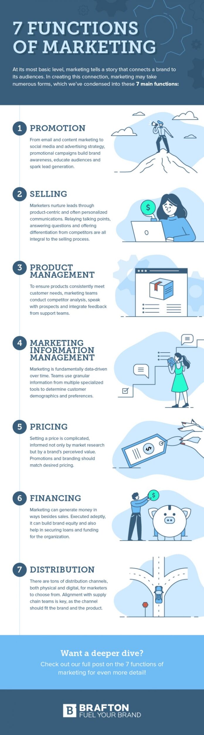 Without further ado, let’s dig into the 7 functions of marketing and take a look at how they align with overarching business objectives.