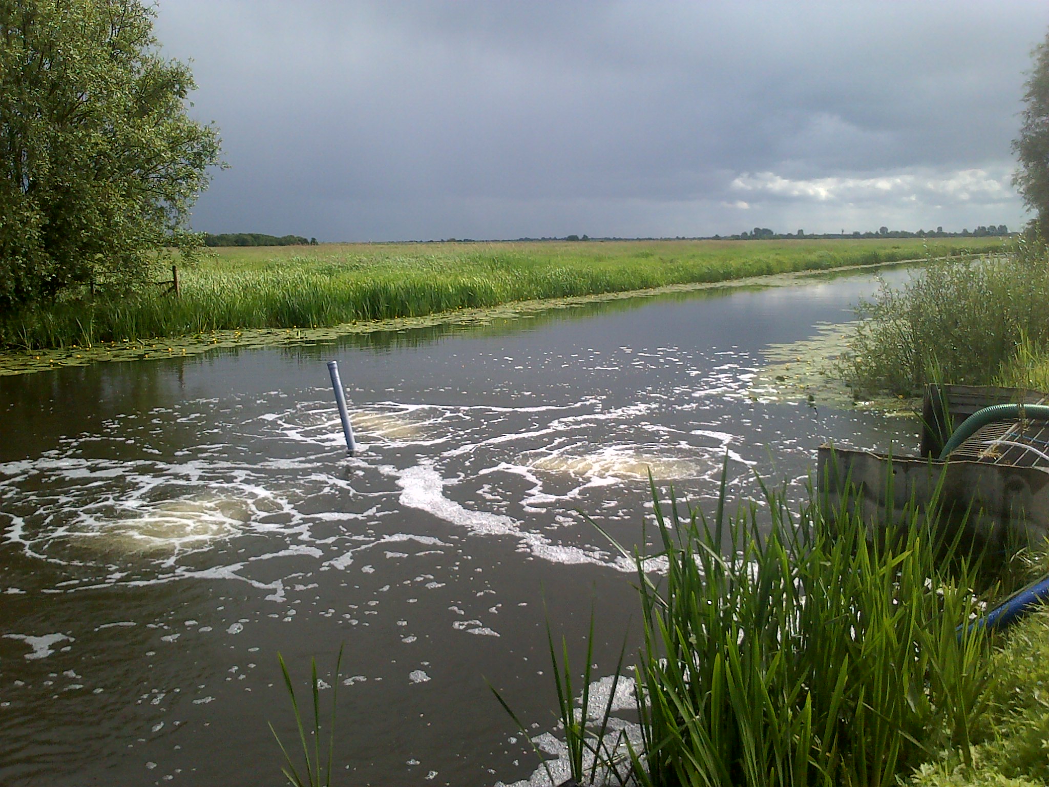In addition to aeration, sweetening flows are used to improve water quality and prevent stagnation. A sweetening flow is when fresh water is introduced into the Delph by opening sluices. This process replenishes oxygen levels, and by keeping the water moving it reduces oxygen depletion. In emergency situations Fisheries staff may also undertake emergency oxygenation using chemical aeration techniques, principally with hydrogen peroxide, to rapidly improve water quality.