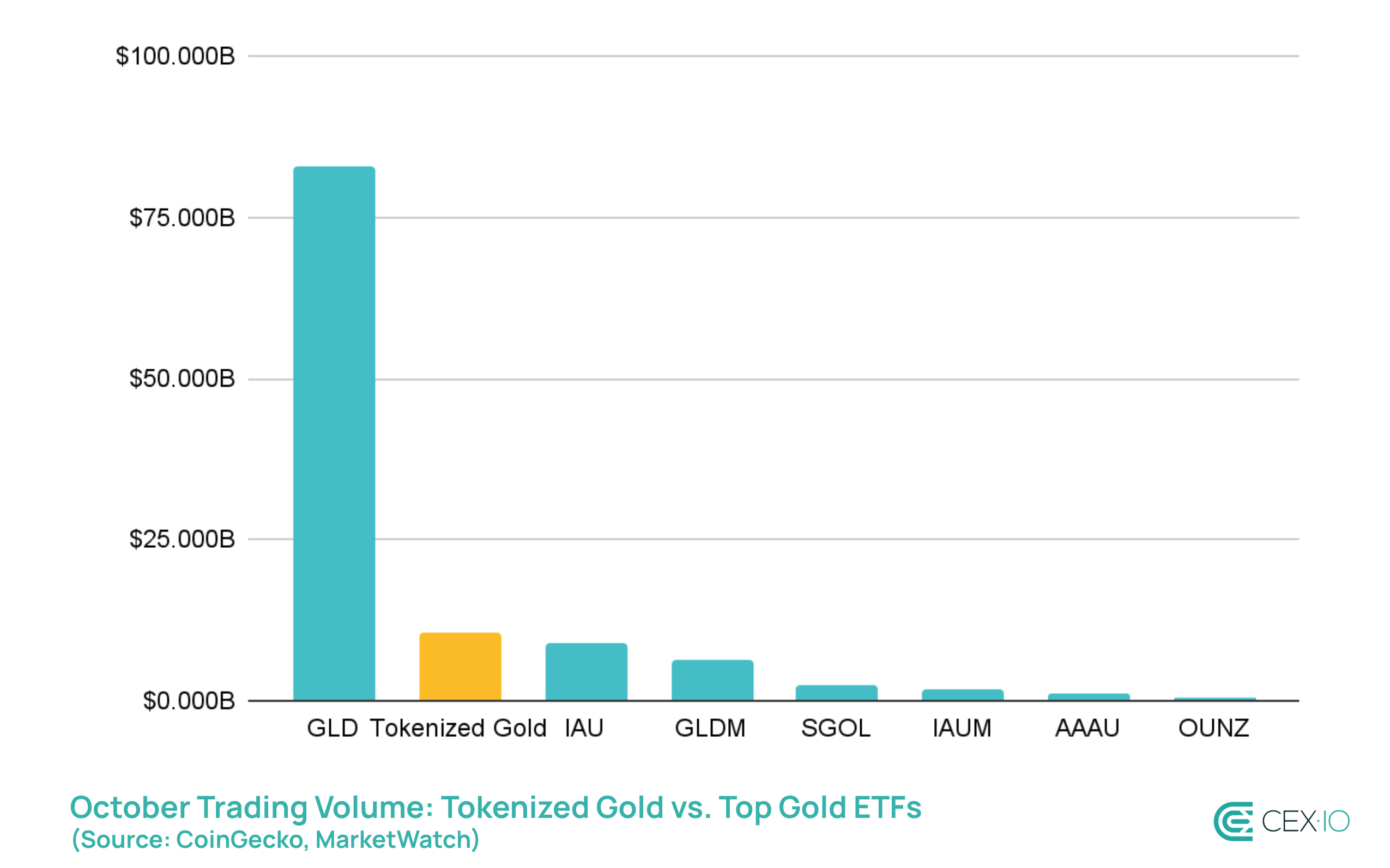 Today, only SPDR Gold Shares (GLD), with over $80 billion in trading volume, remains ahead, underscoring how quickly tokenized gold is closing the gap with traditional ETFs and establishing itself as a mainstream investment vehicle.