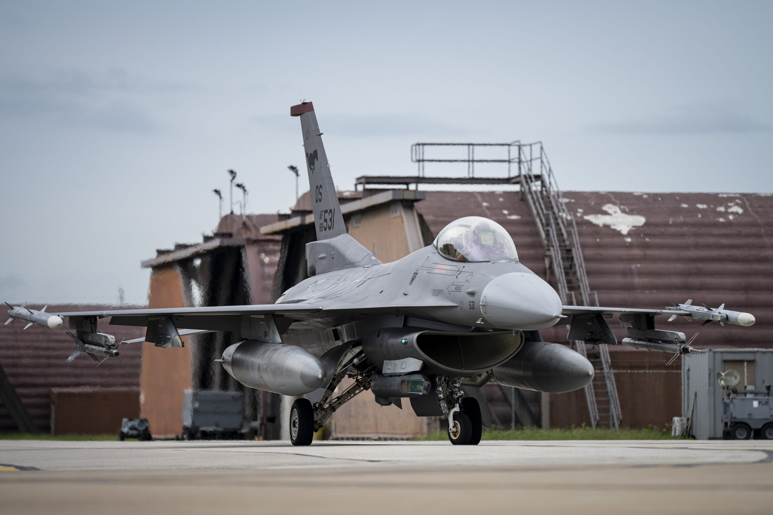 A U.S. Air Force F-16 Fighting Falcon at Osan Air Base, Republic of Korea, Sept. 18, 2025. Photo by Tallon Bratton