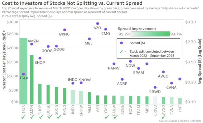 - Around 200 stocks priced between $250 and $1,000 will have 40-share round lots, including TSLA, AVGO, META, and ASML.