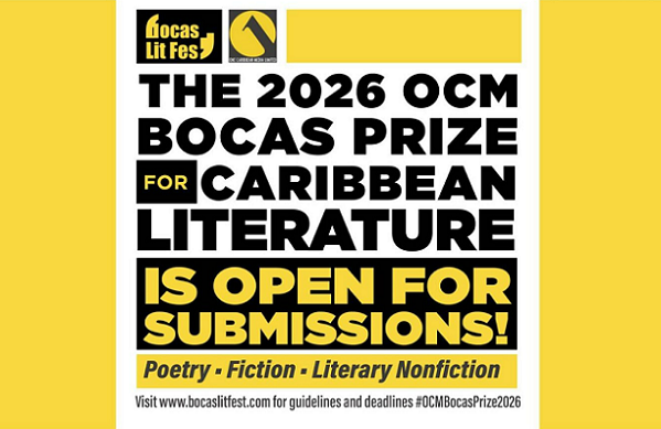The 2026 OCM Bocas Prize for Caribbean Literature is open for submissions. For entry forms, eligibility and guidelines, visit Bocas Lit Fest.