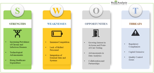 In this article, we have tried to summarize the key strengths and opportunities within the IVD market. In addition, we have provided brief information about the weakness and the threats posed by this market.