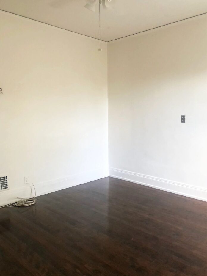 I believe I have the world’s kindest and most wonderful landlord. However, I am fairly certain this room did not get repainted before I moved in. The ceiling had a discoloration spot, and overall, it just needed a fresh coat. I emailed her, asking if I paid for the paint, would she be willing to pay for the labor. I showed her the areas of concern, promised her it would be another white (lol) as to not do anything crazy/non renter-friendly, and she kindly agreed. PHEW. Next stop was getting my Samplize paint stickers.