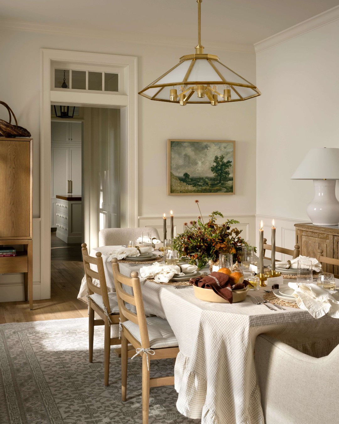 Autumn is a time for gathering. Set the table with layers of texture and light. A linen tablecloth paired with woven placemats feels relaxed but elegant. Add candles in varied heights for atmosphere and a few brass or gold accents for warmth. Deep hues like olive, ochre, or terracotta can be introduced through napkins or simple floral arrangements.