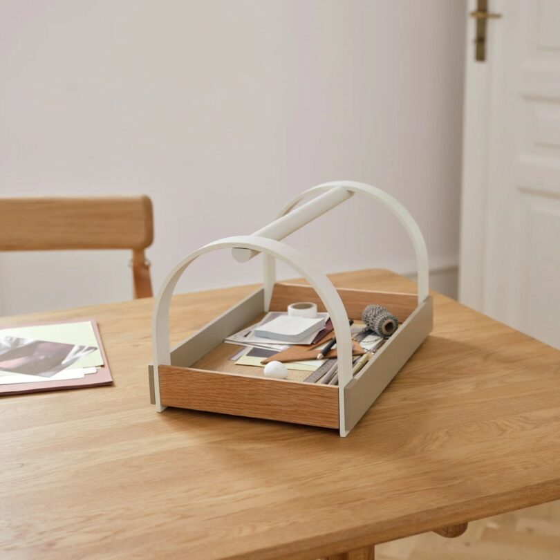 Inspired by the ancient Japanese art of archery, the Kydo tray takes its name and silhouette from kyudo, the ritual of drawing the bow. “Kydo was born from an image of an archer preparing to release the bowstring,” shares Kydo’s designer, E-ggs. “That simple, precise movement became a metaphor for a handle: strong yet balanced, practical yet poetic.” This sculptural curve gives the piece both elegance and strength – a poised moment frozen in time, calm and purposeful. More than just a tray, Kydo becomes a toolbox for daily life, built to carry everything from kitchen essentials and office tools to fresh drinks for the garden party. Crafted from solid wood and available in three colorways, it moves effortlessly through the rituals of your day.