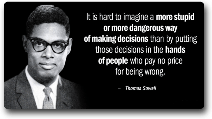 And naturally, the CalPERS officials who made the catastrophic decision to lose THREE HUNDRED AND THIRTY MILLION DOLLARS won’t suffer in the slightest. They won’t be demoted or fired, and they’ll still draw their pensions. Thomas Sowell, a true genius of our time, puts it well …