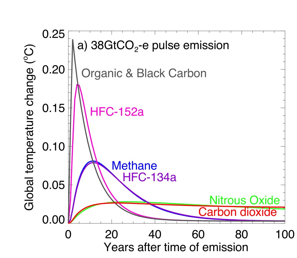 We also have to be careful of thinking that we can offset some CO2 emissions through reductions in methane emssions. This is simply not the case, as illustrated by this 2010 Realclimate post called Losing time, not buying time. I think it’s really important to not treat methane and CO2 as equivalent, so it seems odd to characterise a metric that does this as being controversial. I’ll stop there and will put some links below to other posts that might be worth reading.