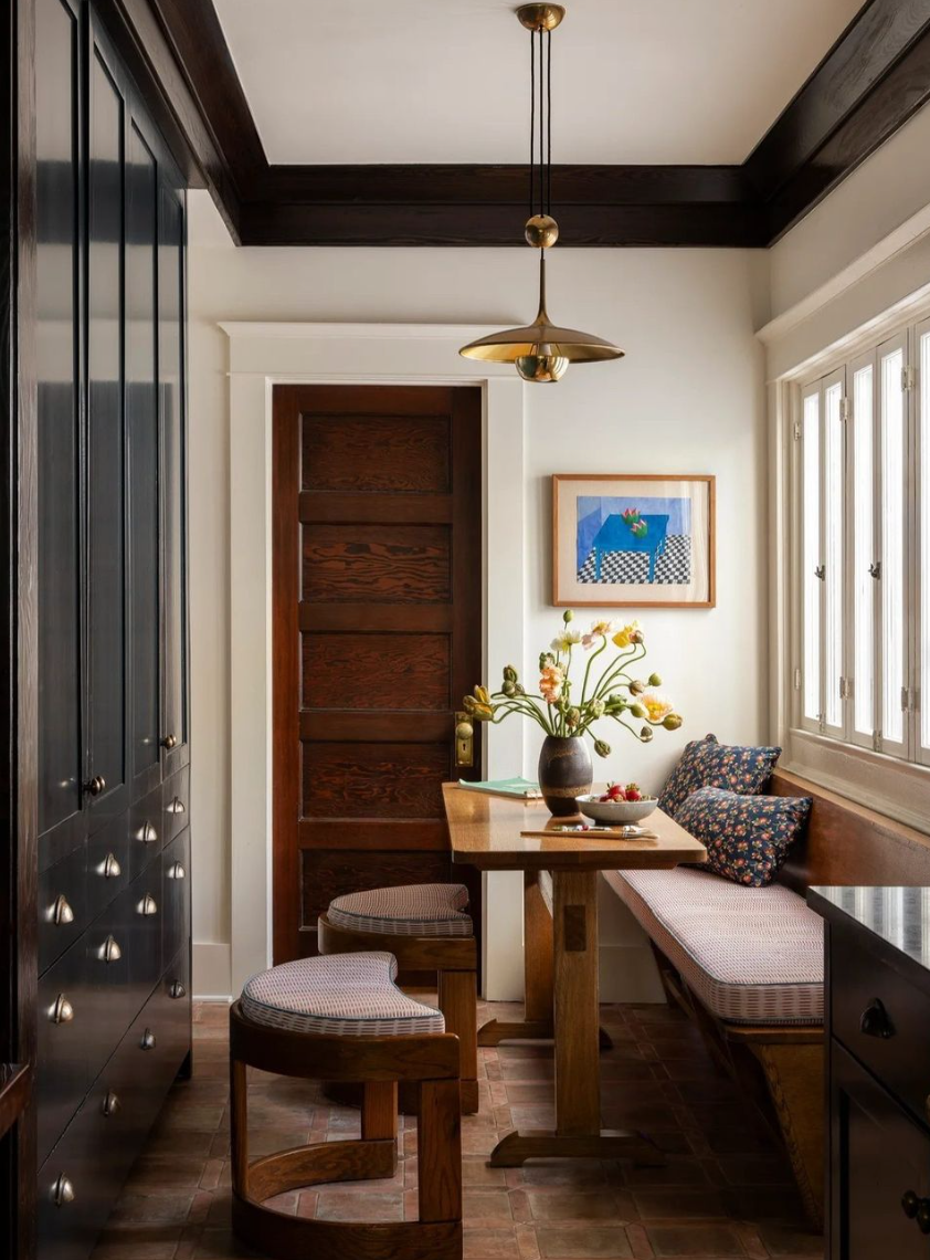 This is an example of how breakfast nooks can sometimes be built into the house. By using this space as a dining area, it creates a cute little cottage nook look.