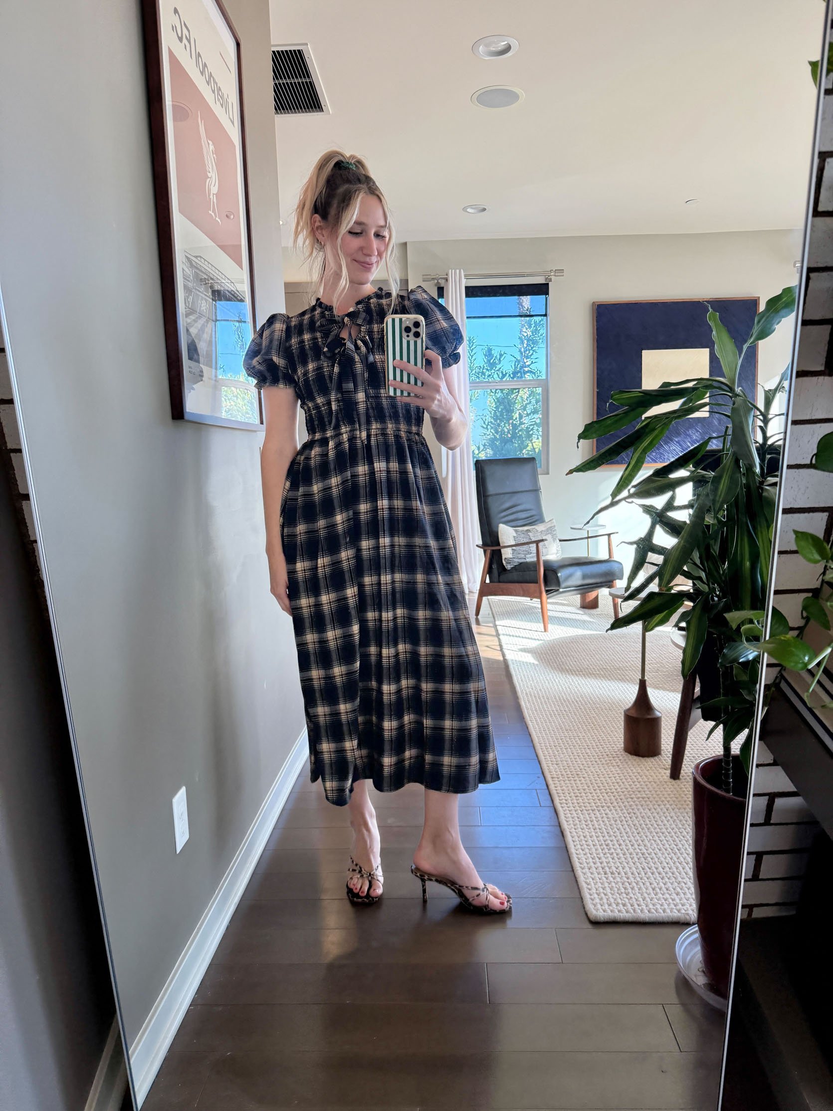 A few years ago, I discovered the joy of “the Thanksgiving dress.” What is a Thanksgiving dress, you may ask?? It’s a perfectly plaid/fall-patterned dress that’s extremely flowy and comfortable but still makes you feel cute (even when you’re sweaty from cooking all day and full from eating all day). I found an amazing one at J.Crew that a ton of you bought and loved a few years ago (it’s not available anymore, but here’s one on Poshmark for a lucky buyer). I still wear it almost every year, and I’m sure a lot of you do too! Also, it turns out that shockingly, most of the EHD have never truly dabbled in the Thanksgiving dress arts. So this year we thought – why not, follow my rules and see what Thanksgiving dresses are on the market this year that each of us likes?? Spoiler: we all found some good ones. Here are our rules for finding the perfect dress: