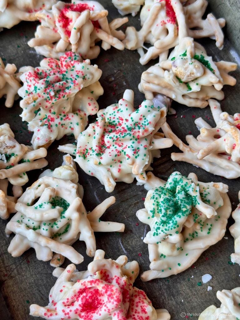 These will keep for up to 2 weeks in an airtight container. These make great gifts for the holiday season. You will find the chow mein noodles in the “International” isle at the grocery store.