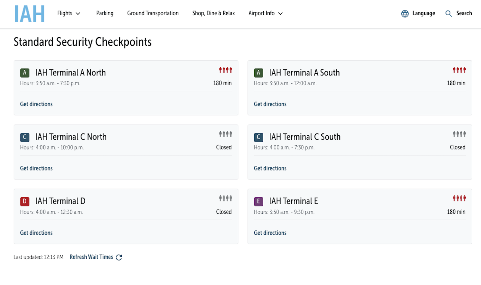 My advice: Start by checking to see if your airport has a page on its website that tracks security wait times. For example, at IAH as of noon EST Monday, the airport’s webpage showed average backups of 180 minutes (three hours) — which means you’d want to be there at least four or even five hours before your flight.