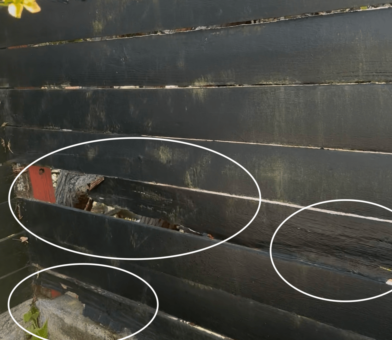 This one stung because it was avoidable in hindsight. About two years after we bought the home, I noticed a section of fence in the back corner starting to crumble. At first, I chalked it up to normal wear. Then part of the board fell off one day. When I looked closer, I realized multiple boards were rotting from the inside out.