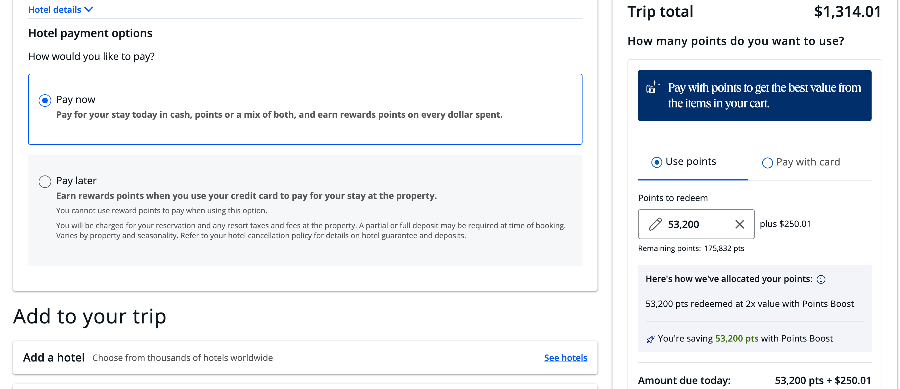 I can pay just 53,200 points by stacking the biannual The Edit credit on top of Chase’s Points Boost for the two-night stay instead of redeeming 65,700 Ultimate Rewards points.