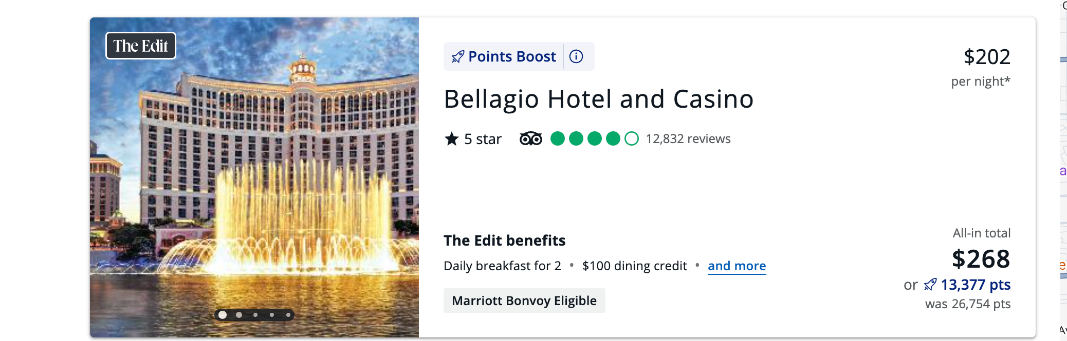 For example, if you are booking a stay in Las Vegas, it is very common for some of the properties featured in The Edit to price between $200 and $300 per night. So, the (up to) $250 biannual statement credit could easily cover the majority of a one-night stay, leaving you to potentially use a reasonable number of points at a value of 2 cents each via Points Boost (or cash) to cover the second night.