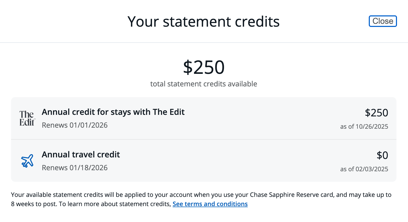 As a Sapphire Reserve cardholder, my points-saving strategy has changed now that I’ve confirmed that I can stack my Chase The Edit credit — an up-to-$500 annual statement credit (up to $250 biannually) for prepaid The Edit bookings of two nights or more (booking done through the Chase Travel℠ portal) — with Points Boost.