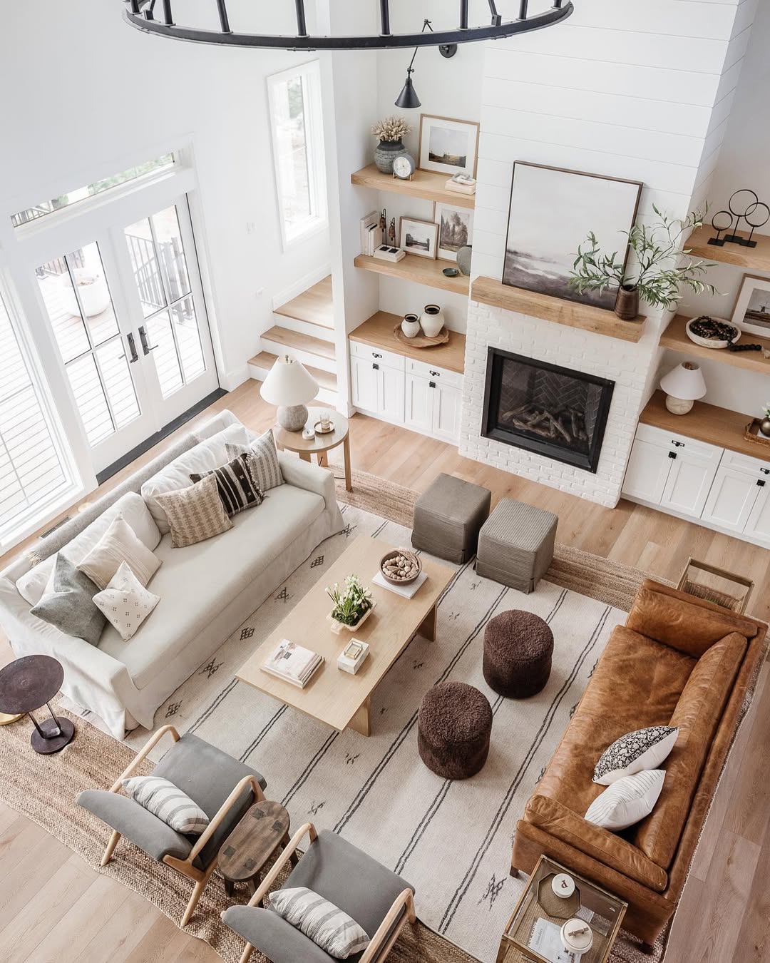 A neutral palette never goes out of style. In the fall, it becomes especially inviting. Combine warm whites, taupes, and browns to create a timeless look. Layer throws and pillows in different textures such as linen, knit, and boucle to add depth and softness. A touch of dark wood or aged brass gives the space a grounded, refined feel.