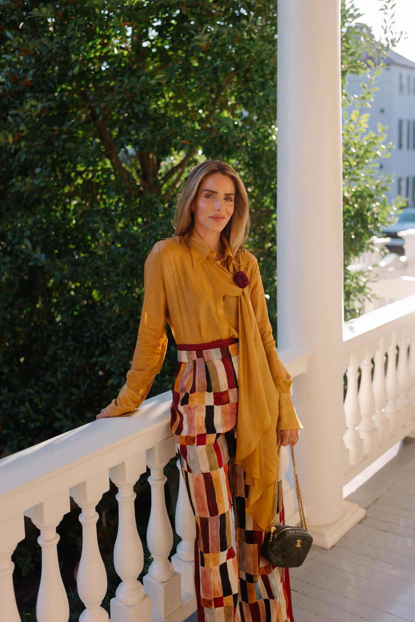 Victoria Beckham Top, Alemais Pants, Jimmy Choo Boots, Chanel Brooch & Bag (both old, similar here and here)