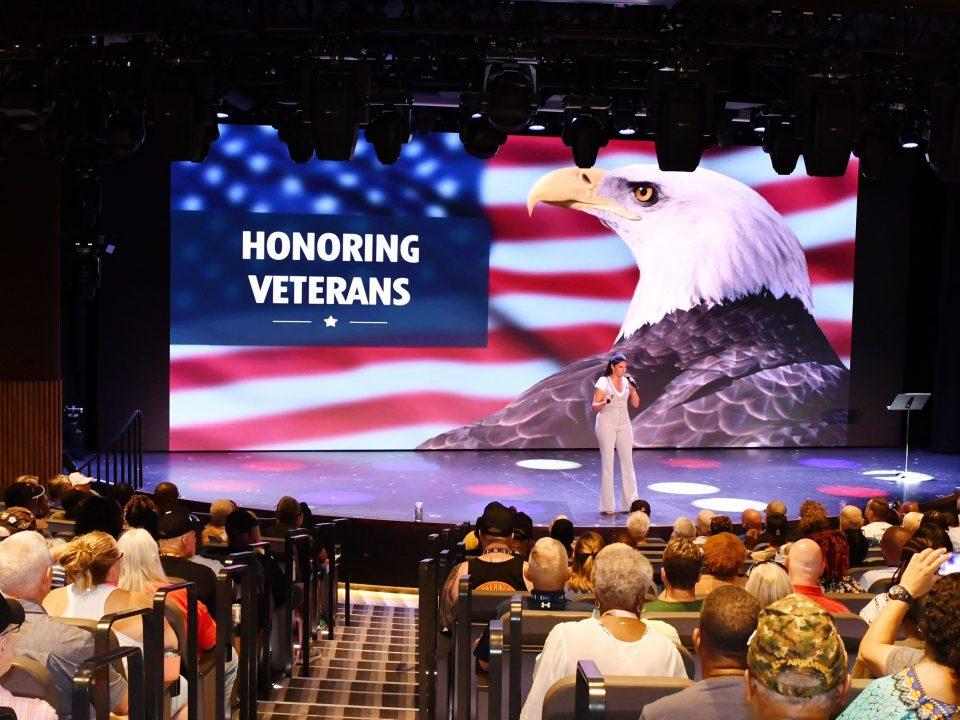 In observance of the upcoming Veterans Day, Carnival Cruise Line hosted a special tribute reception aboard the Mardi Gras for nearly 100 local veterans, surviving spouses, and children of fallen military and first responders. The event was held in partnership with the Orlando Veterans Affairs Healthcare System (Orlando VA) and the Gary Sinise Foundation, celebrating the service and sacrifice of America’s heroes.