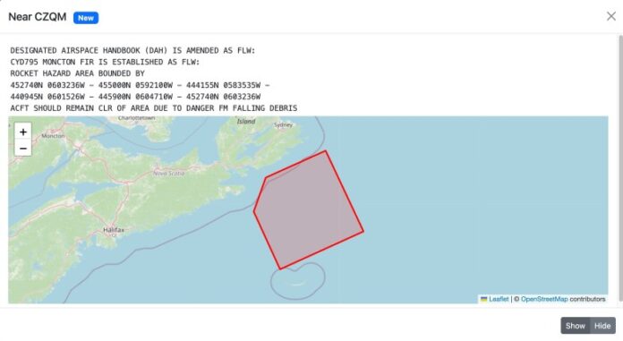 The only other launch to date from Spaceport Nova Scotia was a university launch by York University in July 2023 which reached 13.4 kilometres.