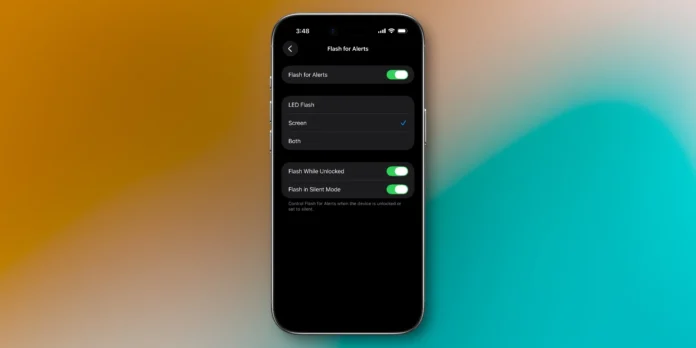 Inside that menu, you can toggle Flash for Alerts and choose to use the LED Flash, Screen, or both. Once you activate the display flash, notifications will make your iPhone briefly light up to maximum brightness before returning to normal brightness.