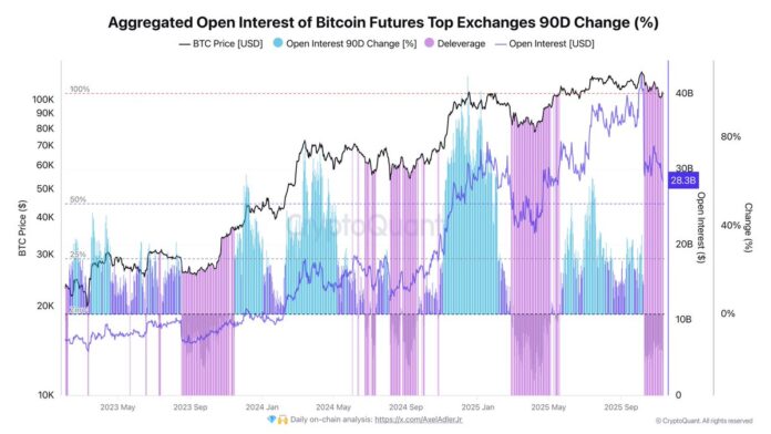 With the current 21% decline in open interest over the last three months, Bitcoin is now approaching those same historical levels of leverage reduction. According to Darkfost, these phases are not necessarily bearish; instead, they serve as healthy resets during bullish market cycles. By forcing overleveraged traders to exit and cooling down speculative behavior, the market is able to rebuild on a stronger, more stable foundation.