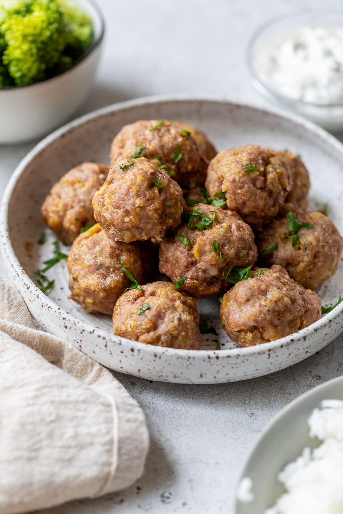 Just like the beef version, these meatballs are deeply satisfying with ALL the comfort food vibes, and they’re also just as perfect nestled in a big bowl of spaghetti with marinara sauce.