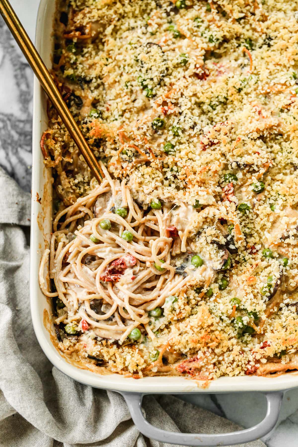 You can’t beat a warm and cozy turkey casserole! And if you’re not exactly in the mood for a big casserole right after Thanksgiving, no worries: just pop it in the freezer and you’ve got a heat-and-eat dinner for another day.