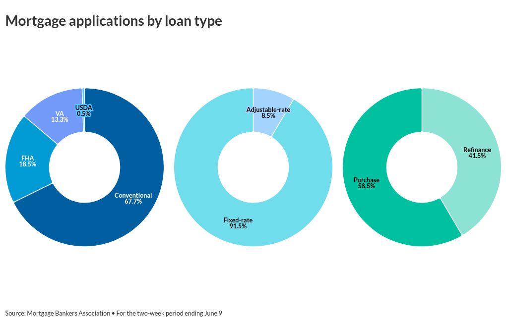 The breakdown of government-backed loans remained mostly unchanged from the week before. FHA applications made up 18.8% of all mortgages while Department of Veterans Affairs-backed mortgages accounted for 12.2%, a notable drop from last week’s 13.3%. Applications for mortgages backed by the U.S. Department of Agriculture decreased, constituting 0.5% of the total.