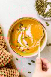 • Freezer: I love to freeze half of this pumpkin ginger coconut soup for later since it reheats so well. Store it in airtight containers in the freezer for up to 3 months. Make sure to leave a little space at the top because the liquid will expand once frozen.
