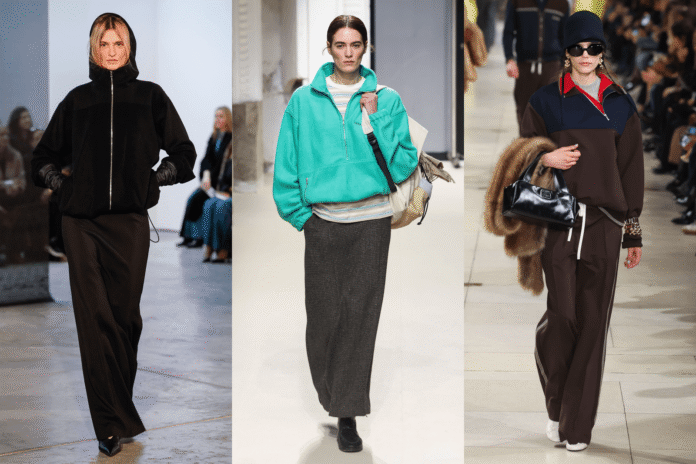 Athleisure gets a bad rap. While staples like sweatpants, athletic jackets, and track pants can skew a little too casual, clever styling tricks (courtesy of the likes of Auralee and Miu Miu this season) prove that your sportiest pieces can also be your most elegant. Consider traditional leggings tired—it’s all about relaxed bottoms now, styled alongside funnel-neck jackets and sweatshirts with enough personality to stand out from the crowd. (Celeb-approved stirrup and capri leggings also fit into this camp, by the way.) Adopt the pieces below and you’ll look less like a gym rat and more like a fashion insider, whether you’re hitting Pilates or grabbing Saturday-afternoon drinks.